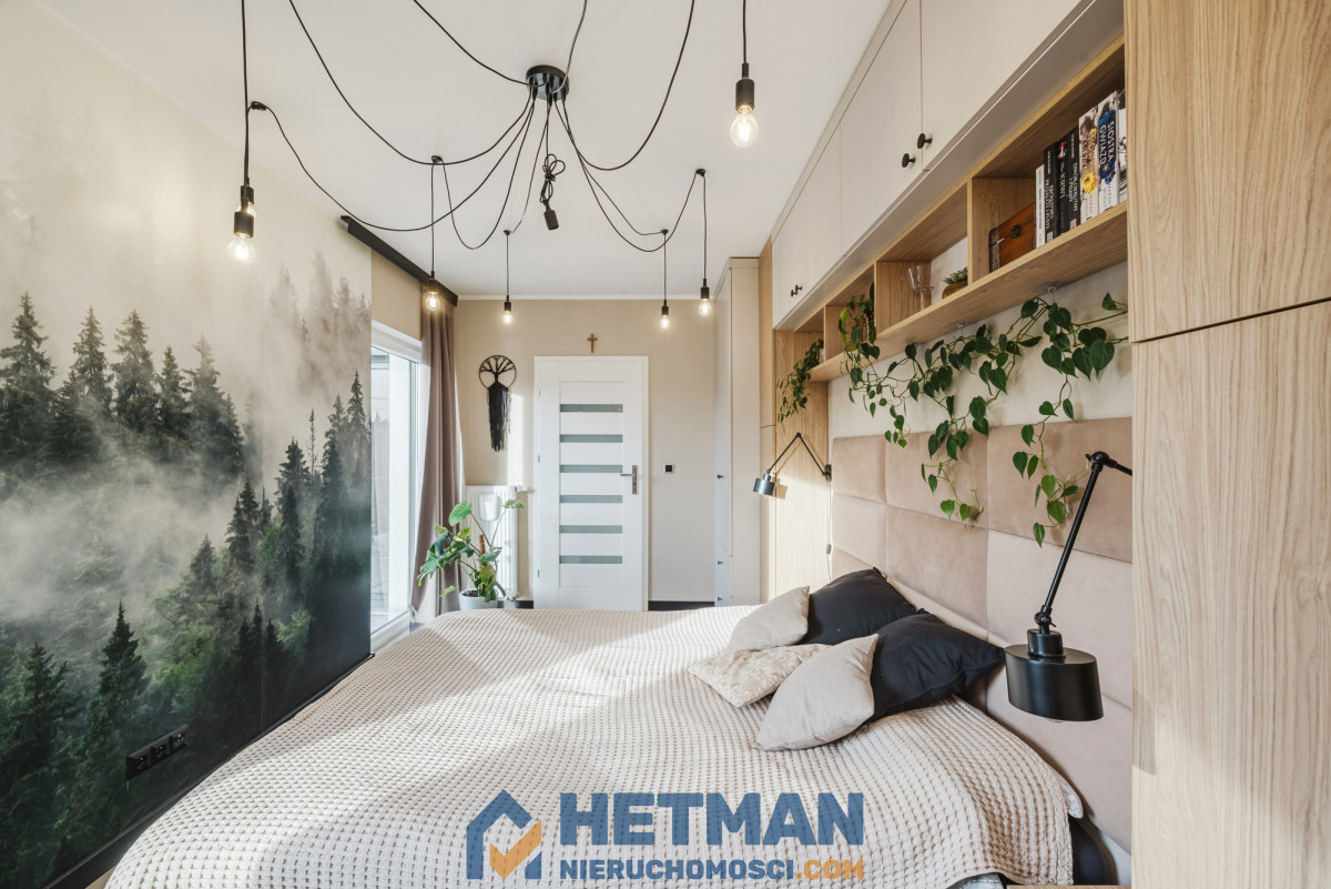 2. główna sypialnia (14,08m²) - wyposażona w nową zabudowę, z wyjściem na taras;