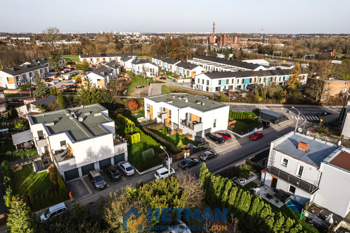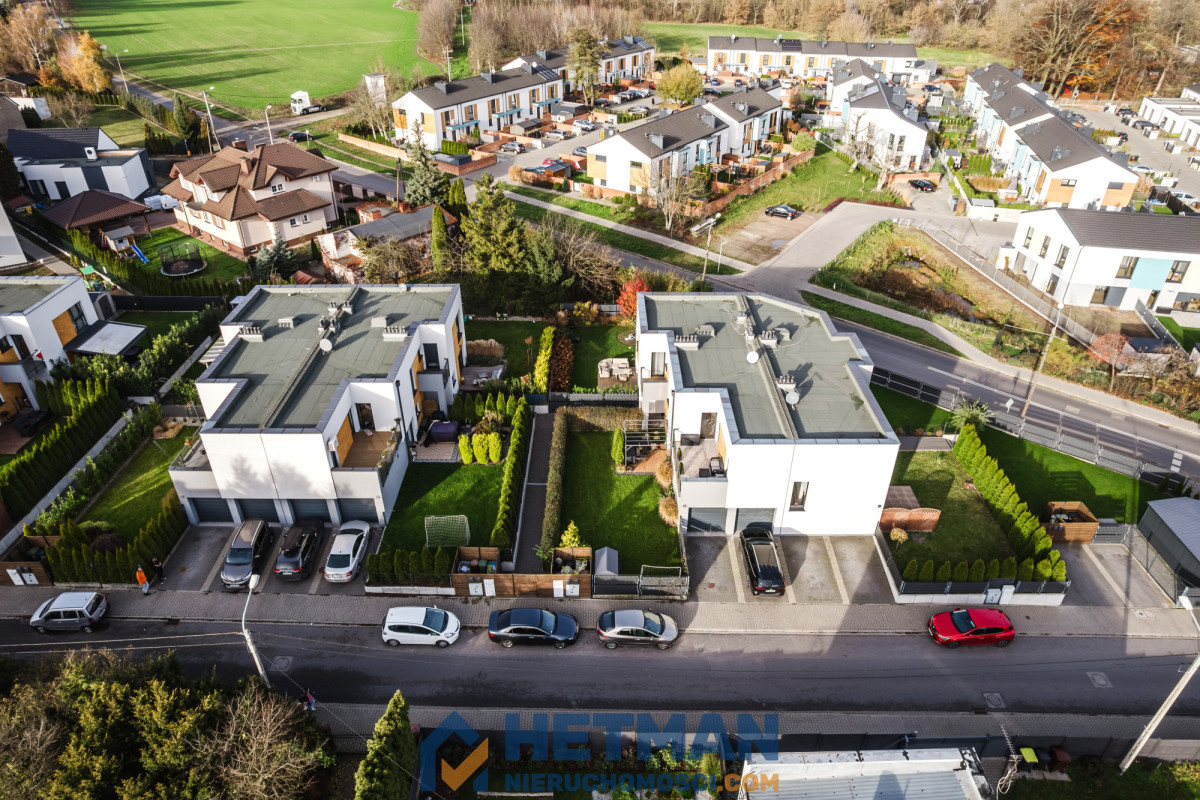 Nieruchomość została wykończona z bardzo dobrych jakościowo materiałów, z dbałością o każdy szczegół. Meble na zamówienie: zabudowa kuchni, szafa wejściowa, zabudowy w sypialni oraz toalecie. Na parterze rolety zewnętrzne, tarasowa - elektrycznie sterowana. Przestrzeń ogrodowa w całości zagospodarowana, zadbana i stale odpowiednio pielęgnowana. Znajduje się w niej również domek gospodarczy. W bryle budynku garaż (13,70m²) i dodatkowe miejsce postojowe (12,50m²) na terenie działki.